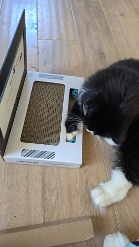 Give your feline friend the ultimate play and rest spot with our cardboard cat scratcher laptop design. Built from premium, non-toxic corrugated cardboard, this scratcher keeps your cat safe while protecting your furniture from unwanted claw marks. The odor-resistant materials also ensure your home stays fresh, even with frequent scratching sessions.