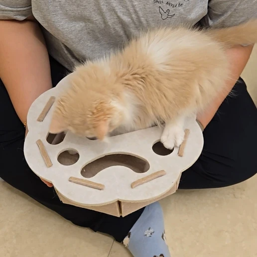 The cat treat toy puzzle is designed with a compact size, making it easy to store and move around. Perfect for apartments or small homes, this interactive toy ensures your cat can enjoy fun play sessions without taking up too much space. Its flat-pack design allows quick assembly without the need for tools, making it a convenient choice for pet owners.